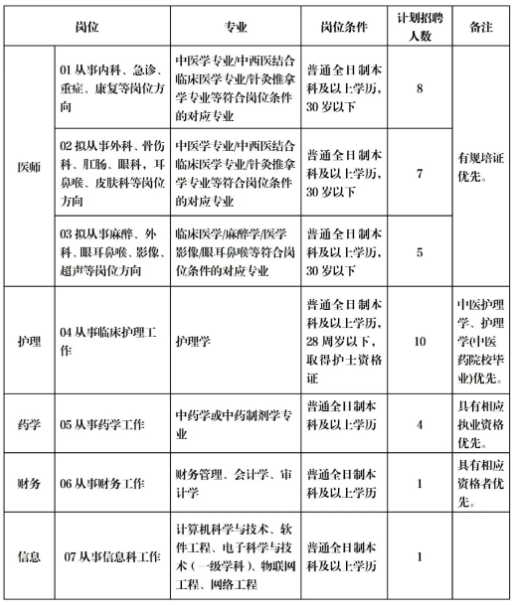 注:硕士研究生,主治医师年龄在35周岁以下,有规培证,不限专业,不限名额,可随时应聘。