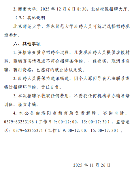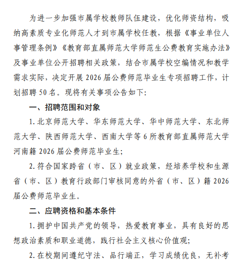 2025洛阳市教育局招聘教育部直属师范大学2026届公费师范毕业生50人公告